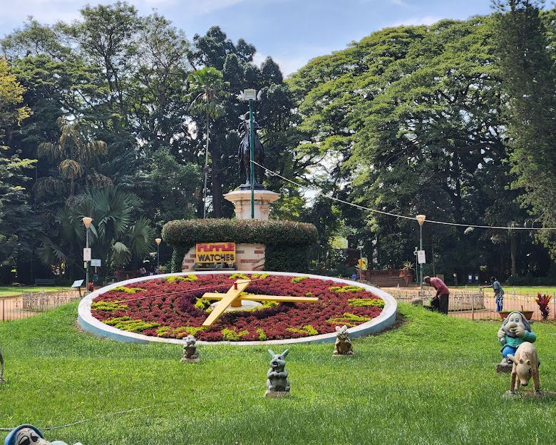 A unique garden feature with a large working clock made entirely of seasonal flowers and plants. It’s a charming landmark inside Lalbagh